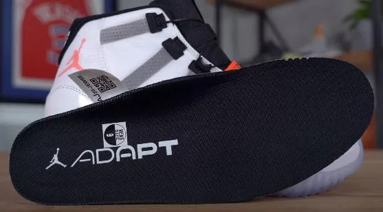 Ürünün yapısal özelliklerindan başka üst sayada off-white bir dikiş ile parlak üst saya ve mesh kombinasyonuna ifrred bir band eklenmiş. Dil ve boğaz kısmı iç yumaşak malzeme ile konforlu hale getirilerek siyah renk ile bititilmiş. İç tabanı ise “jumpman” figürünün yanında “ADAPT” yazısı ise siyah olarak tercih edilmiş. Jumpman ayakkabının boğazında dildeki bant ile uyumlu infra-red olarak kullanılmış